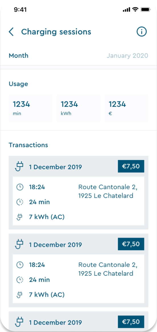 Track your charging history in a comprehensive overview per month and in single transaction details.