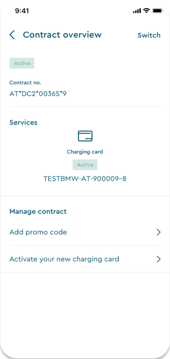 Access information about your contract and activate a new charging card in case your old one got lost.